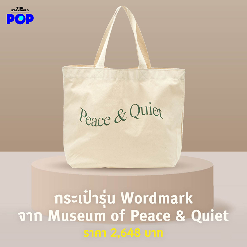 หนึ่งในแบรนด์ที่กำลังได้รับความนิยมในหมู่วัยรุ่นไทย อย่าง Museum of Peace & Quiet จากแคลิฟอร์เนีย สหรัฐอเมริกา ด้วยคอนเซปต์ ‘Peace & Quiet’ อันหมายถึงสติและความเงียบสงบ โดยออกคอลเล็กชันเสื้อผ้าและสินค้าอีกหลากหลายในรูปแบบยูนิเซ็กซ์ สไตล์มินิมัล ที่ใครๆ ก็สามารถใส่ได้ โดยแบรนด์มุ่งเน้นไปที่ความเรียบง่ายใส่สบาย ไม่น่าเบื่อ จนปัจจุบันถือว่าเป็นหนึ่งในแบรนด์สุดฮิตของวัยรุ่นจากทั่วโลกทั้งๆ ที่เพิ่งก่อตั้งได้เพียง 4 ปีเท่านั้น หนึ่งในไอเท็มขายดีอย่างกระเป๋าผ้าใบใหญ่ที่สอดแทรกความร่วมสมัยด้วยการวาง Typography สุดคูล คำว่า Peace & Quiet ลงบนกระเป๋าด้วยลูกเล่นสนุกๆ กับสีที่สุดสบายตา ผลลัพธ์ที่ได้คือกลายเป็นกระเป๋าผ้าที่หลายคนต่างมองหาและพรีออร์เดอร์กันอย่างถล่มทลาย รายละเอียดเพิ่มเติม https://museumofpeaceandquiet.us