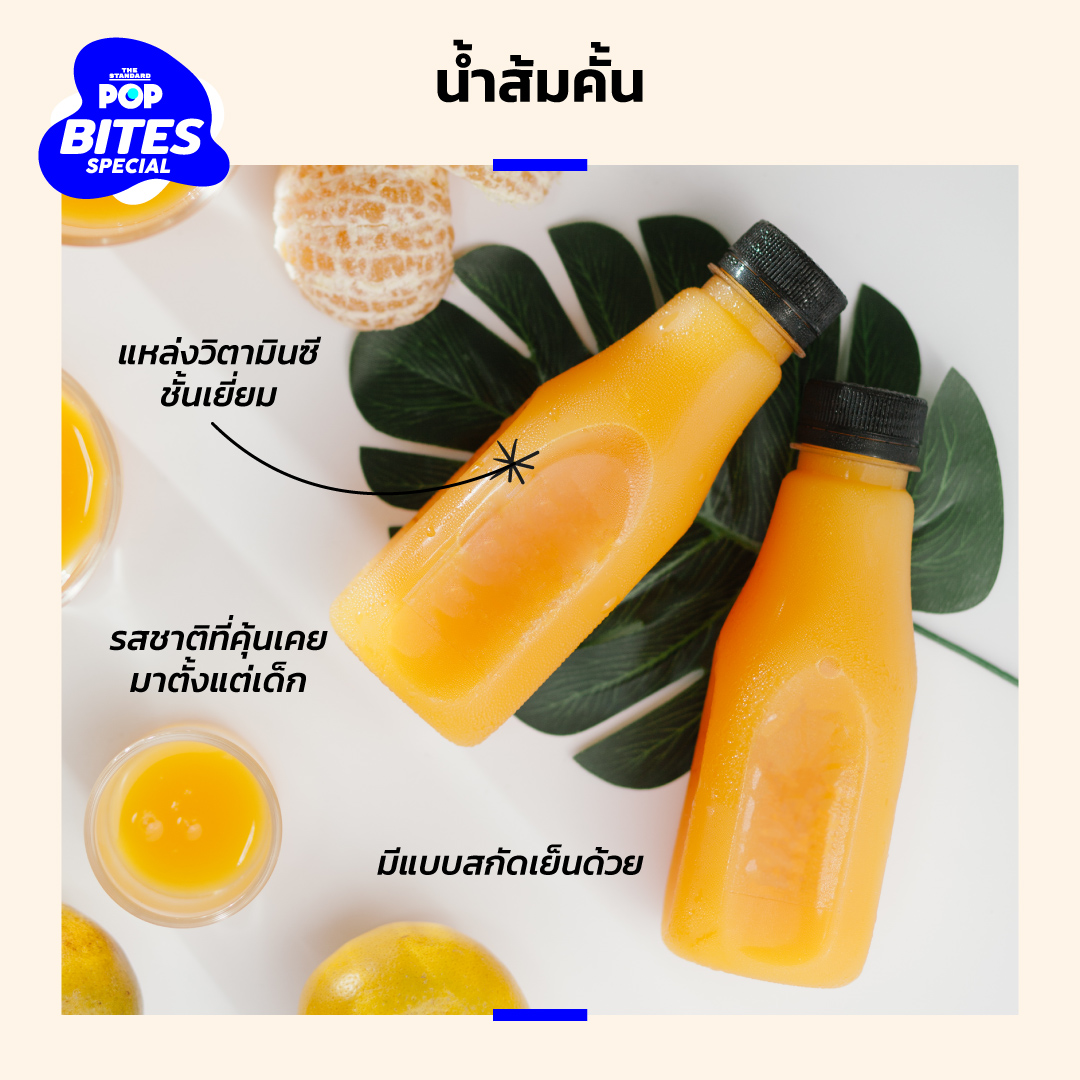นอกจากบราวนีที่ฮิตไปทั่วทุกหย่อมหญ้าแล้ว ยังมีน้ำส้มคั้นที่อยู่ๆ ก็กลับมาฮิต แต่ก็เหมาะกับสถานการณ์ปัจจุบัน เพราะน้ำส้มคั้นเป็นแหล่งวิตามินซีที่ช่วยเสริมภูมิคุ้มกันให้แข็งแรง รสชาติดี ดื่มง่าย ร้านขายน้ำส้มคั้นเกิดใหม่ก็มีตั้งแต่น้ำส้มคั้นบ้านๆ ไปจนถึงน้ำส้มคั้นสกัดเย็นที่คัดเลือกส้มส่งตรงจากสวนส้มทางภาคเหนือ ต่างจากสมัยก่อนที่ถ้าคุณคิดถึงน้ำส้มคั้นสักขวด คุณต้องไปไกลถึงเยาวราช หรือขับรถวนหารถเข็นน้ำส้มคั้นริมถนน