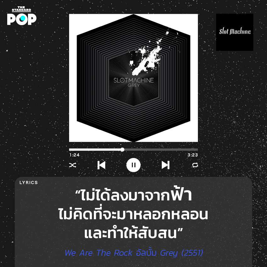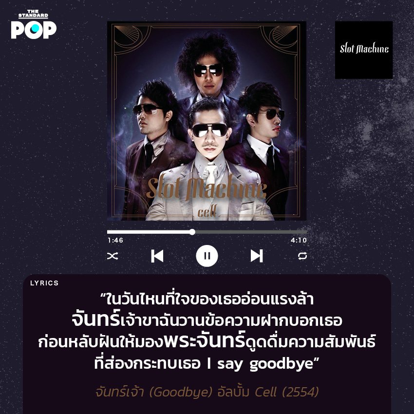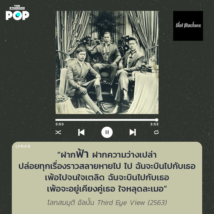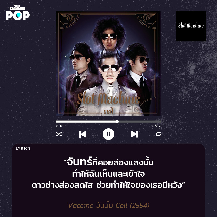 ย้อนกลับไปในวันที่ 30 กันยายน 2553 วง Slot Machine ได้ปล่อยเพลง ‘จันทร์เจ้า’ ออกมาเชื้อเชิญให้ทุกคนร่วมขึ้น ‘ยานแม่’ เดินทางสู่ห้วงอวกาศจนกลายเป็นเหมือน ‘เพลงชาติ’ ประจำวง ที่ต้องหยิบขึ้นมาเล่นในทุกโชว์ พร้อมกันแฟนๆ หน้าเวทีที่ชูสองมือประสานนิ้วเป็นสัญลักษณ์ ‘ดวงตาแห่งปัญญา’ อย่างพร้อมเพรียงโดยมิได้นัดหมาย