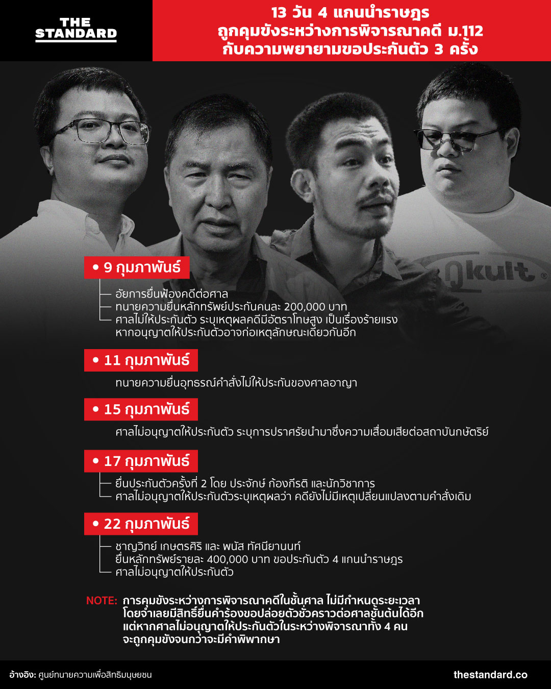 THE STANDARD เปิดเส้นทางความพยายามในการยื่นขอประกันตัว 4 แกนนำราษฎรที่ถูกคุมขังระหว่างการพิจารณาคดี