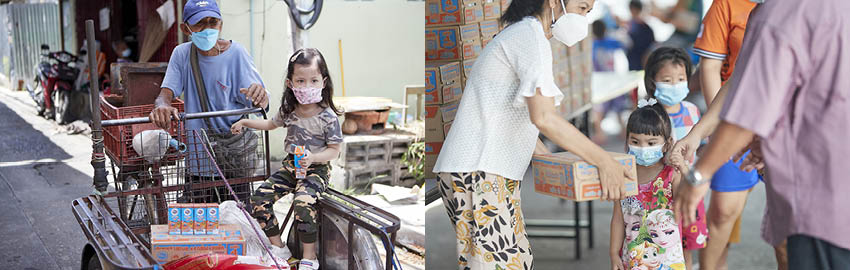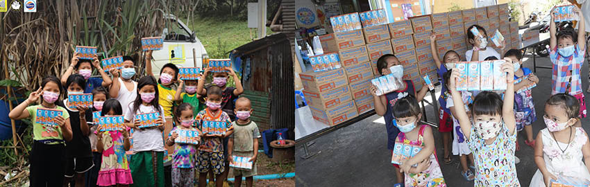 ภาพการส่งมอบนมบริจาคให้แก่ชุมชนต่างๆ ทั่วประเทศไทย จากโครงการ ‘โฟร์โมสต์ส่งต่อรอยยิ้มให้เด็กไทย สู้ภัยโควิด-19’