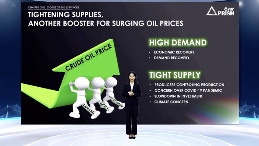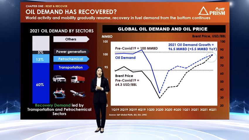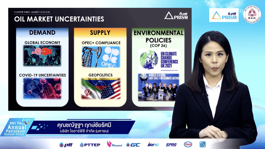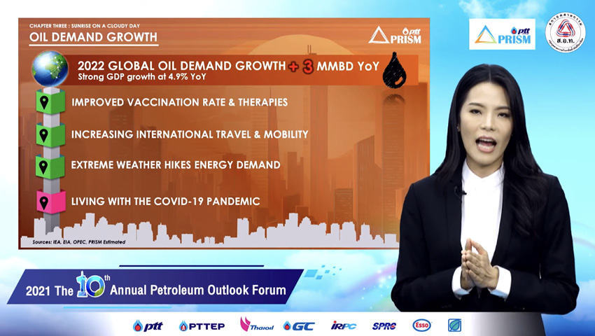 โดยทางทีม PRISM คาดการณ์ว่า จากปัจจัยทั้งหมดนั้นจะทำให้ความต้องการใช้น้ำมันในปีหน้าเพิ่มขึ้นอีก 3 ล้านบาเรลต่อวัน แต่ทั้งหมดนี้อยู่บนพื้นฐานของการฉีดวัคซีนอย่างต่อเนื่อง การเพิ่มขึ้นของอุตสาหกรรมการเดินทางและการขนส่ง รวมถึงการจัดการกับการเปลี่ยนแปลงสภาพภูมิอากาศ