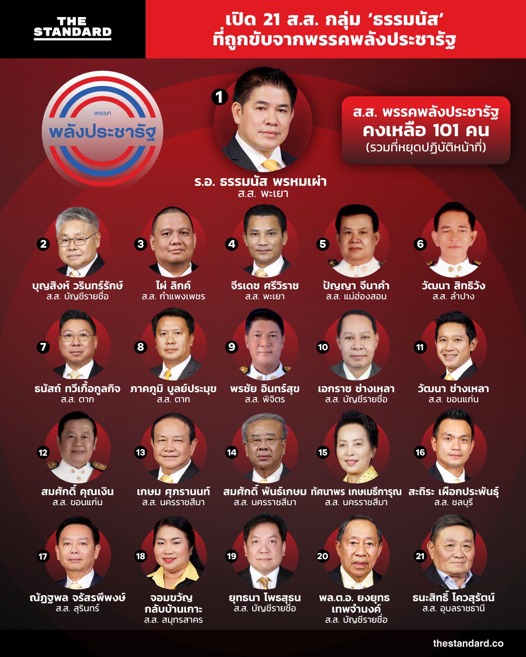 พรรคพลังประชารัฐมีมติขับ ร.อ. ธรรมนัส พรหมเผ่า และ ส.ส. อีก 20 คน รวมทั้งหมด 21 คน ให้ขับออกจากพรรคภายหลังจาก ร.อ. ธรรมนัส ได้เสนอขอปรับโครงสร้างภายในพรรค