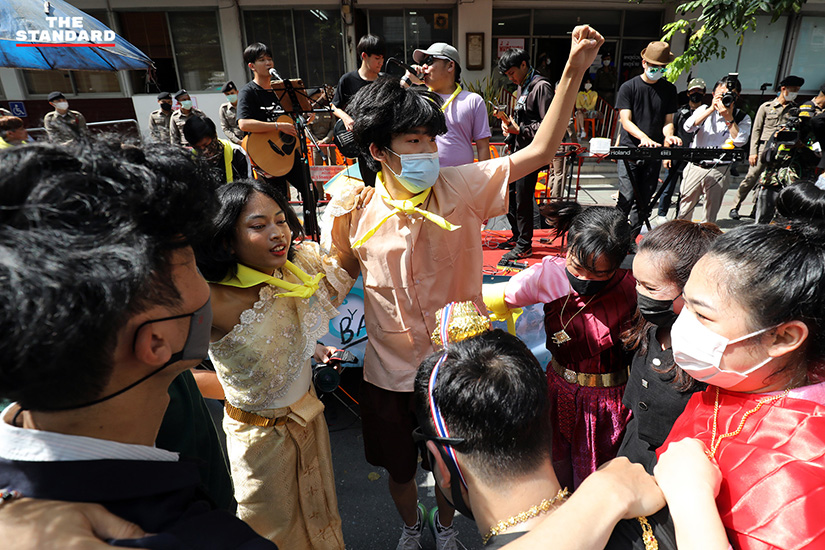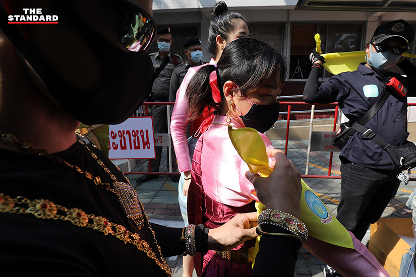 ขณะที่นำตัวเยาวชนขึ้นรถไปยังศาล ได้มีกลุ่มผู้ชุมนุมที่มาให้กำลังใจเข้าไปล้อมรถที่เยาวชนขึ้นไป เนื่องจากมีความกังวลว่าตำรวจจะนำตัวเยาวชนไปที่อื่น จึงขอส่งตัวแทนเข้าไป พบว่าในรถคันดังกล่าวมีทนายความและญาติอยู่ภายในรถด้วย กลุ่มผู้ชุมนุมจึงให้ดอกไม้เป็นกำลังใจ ก่อนเปิดทางให้รถคันดังกล่าวไปศาลเพื่อดำเนินการตามกฎหมาย