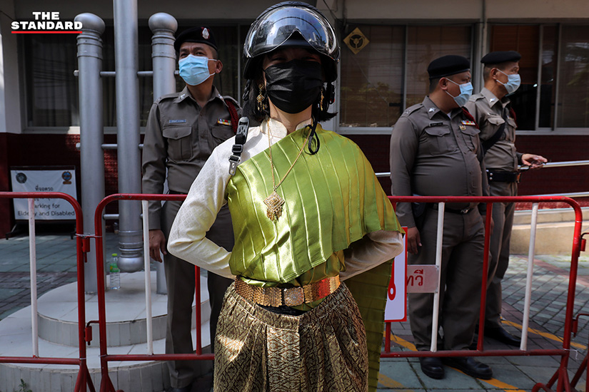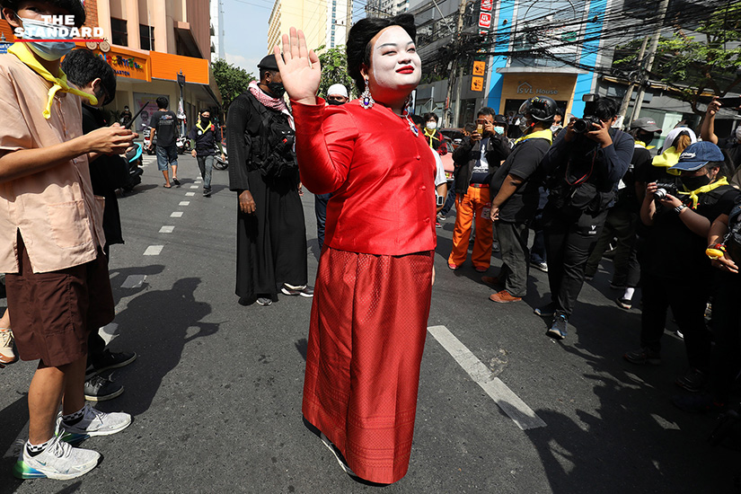 ด้าน เพนกวิน-พริษฐ์ ชิวารักษ์ แต่งกายด้วยชุดไทยสีแดงพร้อมทาปากด้วยสีจัดจ้าน โดยเดินทางมาร่วมกิจกรรมหน้าสถานีตำรวจนครบาลยานนาวา พื่อร่วมให้กำลังใจจตุพรและเยาวชนอายุ 16 ปีที่มารายงานตัวรับทราบข้อหาตามความผิดในประมวลกฎหมายอาญา มาตรา 112 กรณีแต่งกายในชุดไทยไปร่วมกิจกรรมแฟชั่นโชว์ที่ถนนสีลม เมื่อวันที่ 29 ตุลาคมที่ผ่านมา