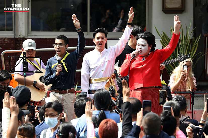 ด้าน ทราย-อินทิรา เจริญปุระ ก็ได้เดินทางมาบริเวณนี้ด้วยเช่นกัน โดยให้สัมภาษณ์ว่าวันนี้มาร่วมให้กำลังใจกับทุกคน ส่วนตัวที่โดนหมายเรียกในความผิดตามประมวลกฎหมายอาญา มาตรา 112 ของสถานีตำรวจนครบาลบางเขน กรณีชุมนุมที่กรมทหารราบที่ 11 เมื่อวันที่ 29 พฤศจิกายนที่ผ่านมา ตนเองก็ยังสับสนว่าไปทำอะไรจึงถูกหมายเรียกข้อหานี้ ทั้งที่ตนก็ไม่ได้ทำอะไรมากเป็นพิเศษ กลายเป็นว่าใครจะแจ้งความในความผิดฐานนี้ก็ได้ใช่หรือไม่ หลังจากนี้หากถูกหมายอีกก็ไม่กังวล เพราะมันไม่สมเหตุสมผล และจะยังคงเดินหน้าทำกิจกรรมต่อไป