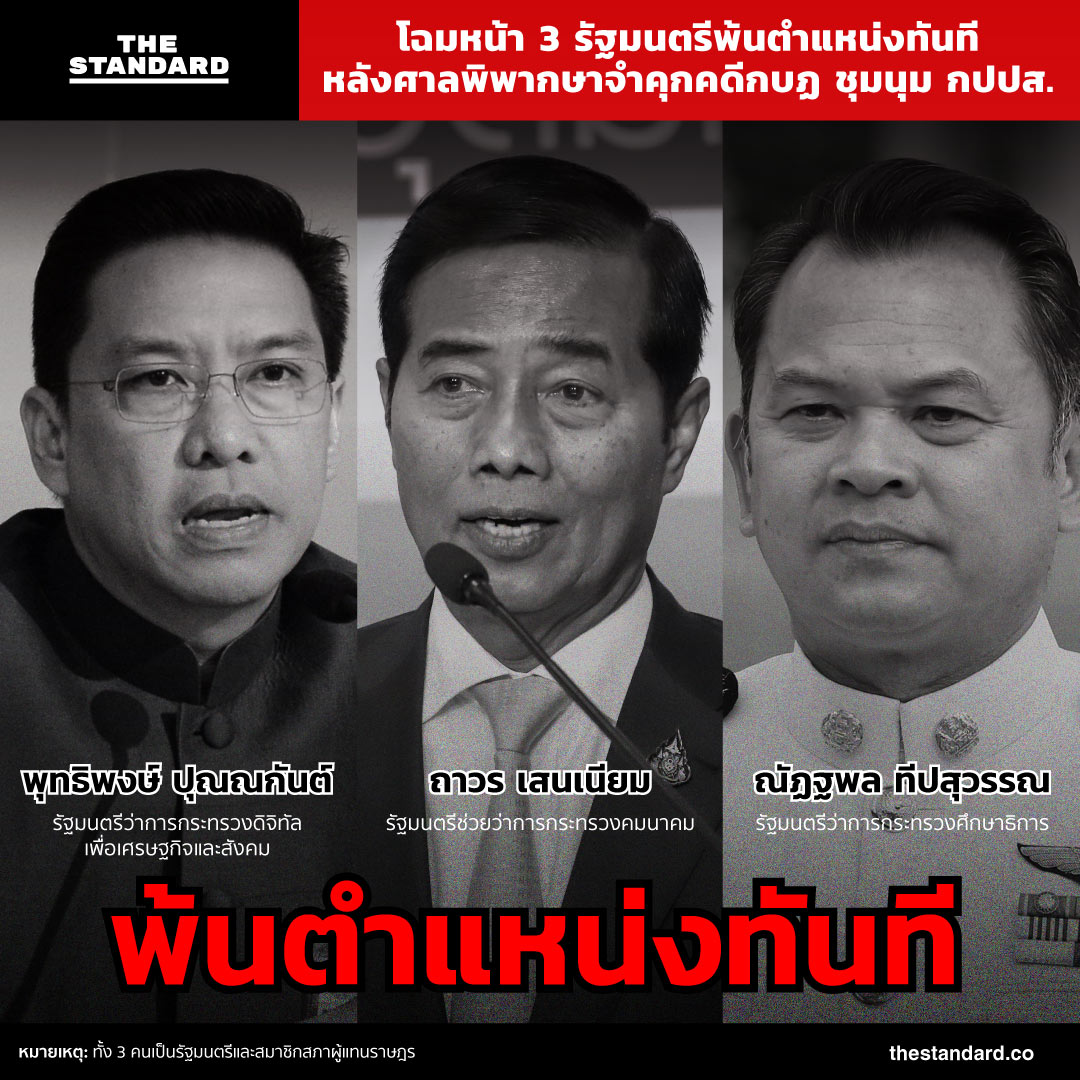 หลังศาลอาญาอ่านคำพิพากษาคดีที่สืบเนื่องจากการชุมนุมของกลุ่ม กปปส. เมื่อปี 2556-2557 โดยพิพากษาจำคุก 3 รัฐมนตรีที่ยังดำรงตำแหน่งในปัจจุบัน ประกอบด้วย พุทธิพงษ์ ปุณณกันต์ รัฐมนตรีว่าการกระทรวงดิจิทัลเพื่อเศรษฐกิจและสังคม จำคุก 7 ปี, ถาวร เสนเนียม รัฐมนตรีช่วยว่าการกระทรวงคมนาคม จำคุก 5 ปี, ณัฏฐพล ทีปสุวรรณ รัฐมนตรีว่าการกระทรวงศึกษาธิการ จำคุก 6 ปี 16 เดือน