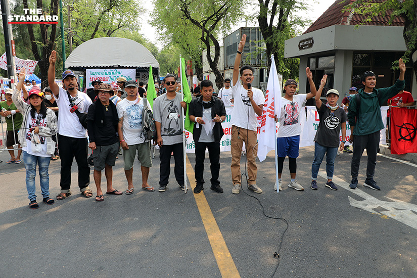 โดยขบวนเดินทางมาถึงบริเวณหน้าทำเนียบรัฐบาลในเวลา 15.00 น. ไม่มีเหตุกระทบกระทั่งกับเจ้าหน้าที่ตำรวจที่ตั้งแนวโดยรอบทำเนียบรัฐบาล และเสริมแนวกั้นคอนเทนเนอร์อีกหลายชั้น