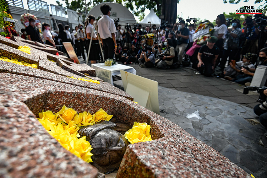 พร้อมพร พันธุ์โชติ นายกองค์การนักศึกษามหาวิทยาลัยธรรมศาสตร์ กล่าวว่าการรำลึกในวันนี้เป็นสัญลักษณ์ที่ย้ำเตือนว่าเราต้องไม่พากงจักรความรุนแรงนั้นหวนกลับคืนมา การต่อสู้เพื่อประชาธิปไตย เรายังต้องต่อสู้จนกว่าจะได้ซึ่งสิทธิและเสียงในการกำหนดสังคมที่เราอยู่ และกำหนดกติกาที่เราอาศัย