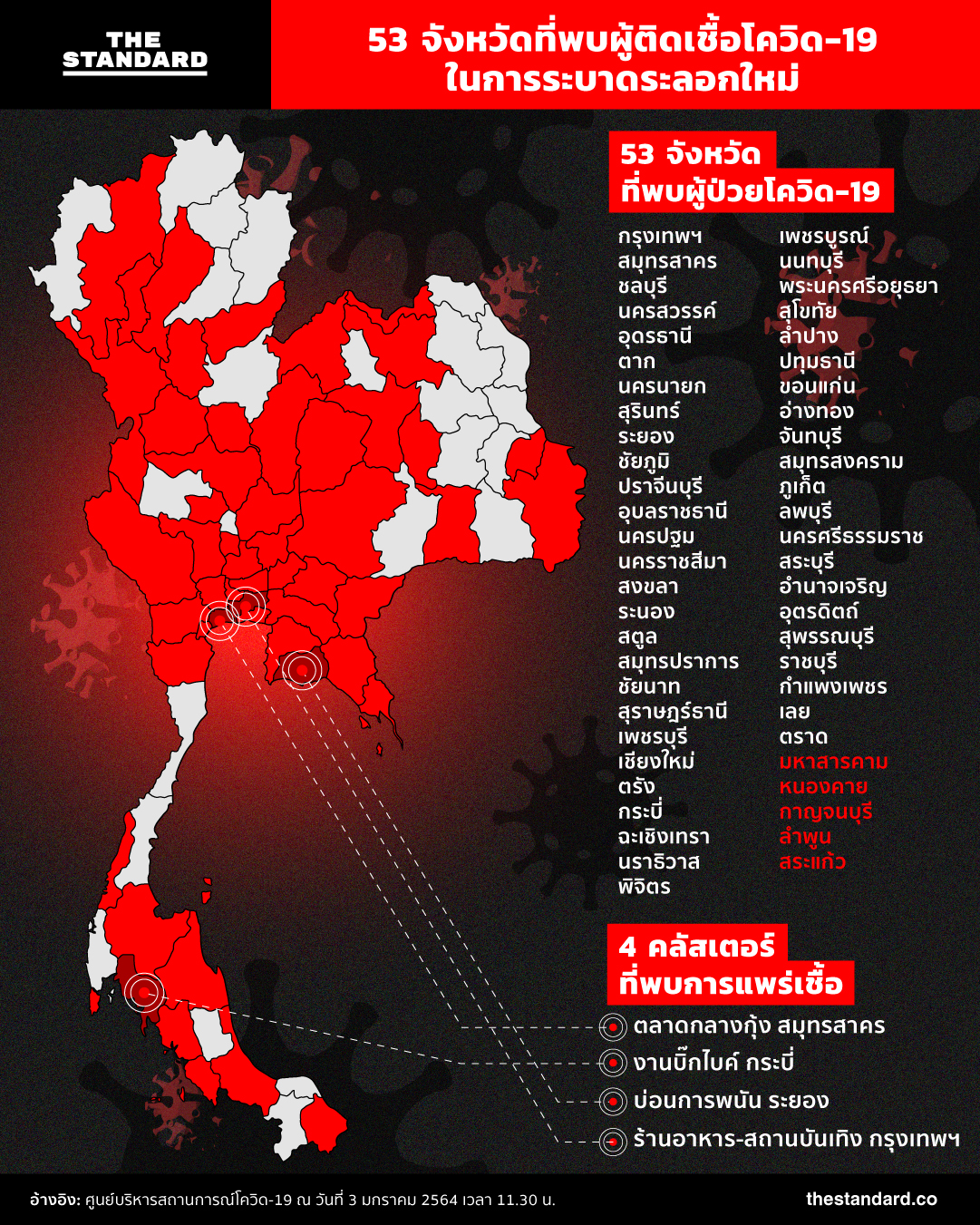 THE STANDARD เปิด 53 จังหวัดที่มีผู้ติดเชื้อโควิด-19 ในการระบาดระลอกใหม่
