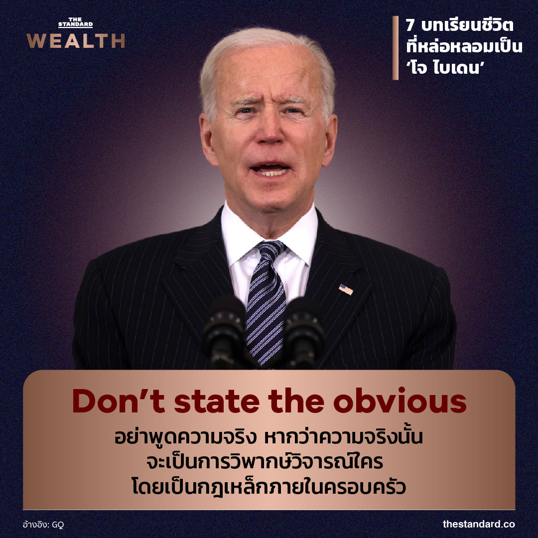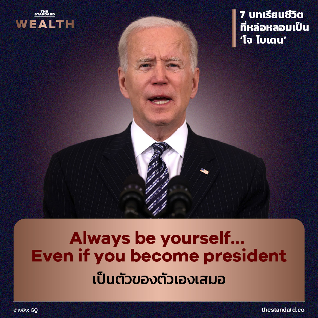 งานนี้ Jeanne Marie Laskas ผู้เคยมีโอกาสสัมภาษณ์ไบเดนเมื่อครั้งดำรงตำแหน่งรองประธานาธบดี เพื่อจัดทำชีวประวัติ จึงได้สรุปประมวล 7 บทเรียนชีวิตที่หล่อหลอมให้เป็น ‘โจ ไบเดน’ ทุกวันนี้