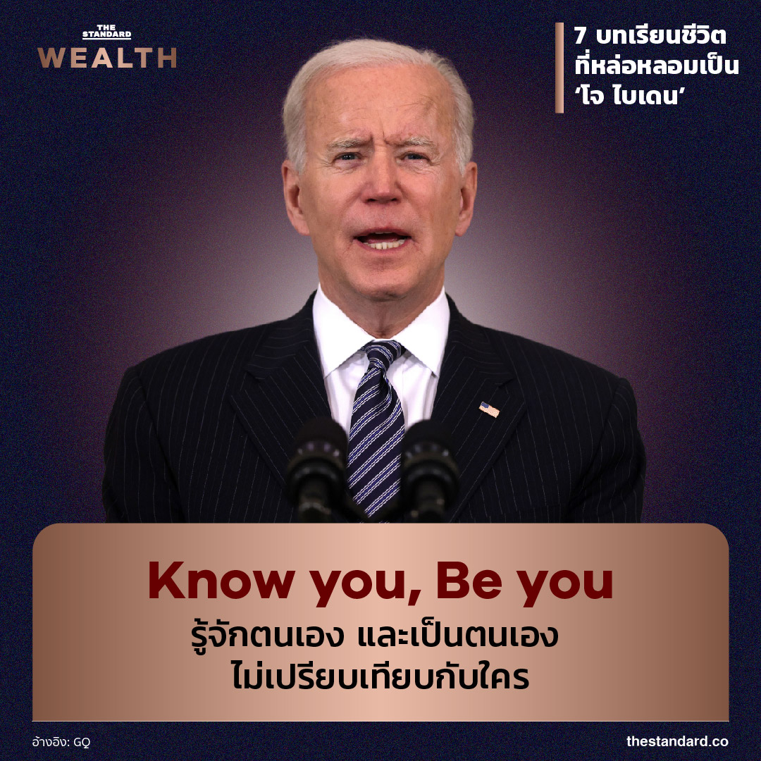 รู้จักตนเอง และเป็นตนเอง ไม่เปรียบเทียบกับใคร โดยไบเดนกล่าวว่า บทเรียนข้อดีคือได้รับอิทธิพลมาจากแม่ที่เลี้ยงดูมา โดยต่อให้ได้เป็นนักกีฬา หรือสอบได้อันดับดีๆ สิ่งที่แม่ของไบเดนมักจะพูดกับเจ้าตัวอยู่เสมอก็คือ ‘ลูกคือไบเดน’