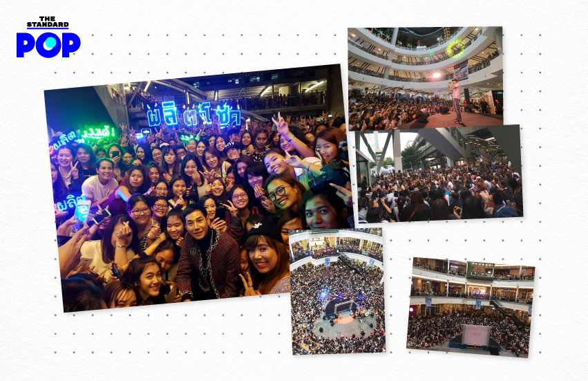 ปรากฏว่าพลังของหน้ากากจิงโจ้ทำให้มีแฟนคลับจำนวนมากมารอเจอเป๊กตั้งแต่ช่วงเช้า จนพื้นที่ลานของห้างเซ็นทรัลเวิลด์อัดแน่นไปด้วยผู้คนที่มาชูป้ายไฟ ‘ผลิตโชค’ แบบไม่เคยคาดคิดมาก่อน