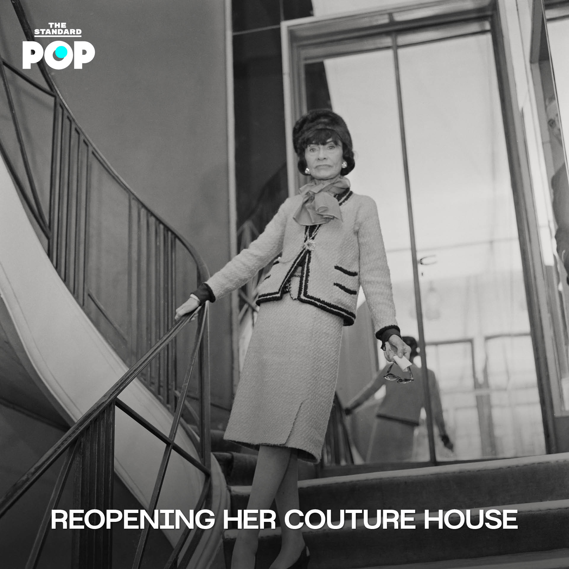หลังสงครามโลกครั้งที่สอง Gabrielle Chanel หยุดกิจการไปชั่วระยะหนึ่ง จนหลายคนคิดว่าเส้นทางของเธอได้จบลงแล้ว แต่ในปี 1954 เมื่ออายุ 71 ปี เธอกลับมาอีกครั้งกับการเปิด Couture House ของแบรนด์ CHANEL เธอปฏิเสธแฟชั่นหลังสงครามที่เต็มไปด้วยโครงสร้างแข็งและความหรูหราที่ซับซ้อน แต่เลือกนำเสนอ Chanel Suit ชุดสูทผ้าทวีดของผู้หญิงที่เน้นดีไซน์เรียบง่าย ใช้งานได้จริง และสง่างาม สิ่งนี้คือการปฏิวัติครั้งใหม่ที่ตอบโจทย์ผู้หญิงสมัยใหม่ที่ต้องการทั้งความสง่างามและเสรีภาพในการเคลื่อนไหว คงไว้ด้วยสไตล์ เป็นเครื่องยืนยันแนวคิดของแบรนด์ CHANEL ที่ไม่เคยตกยุค คิดนอกกรอบ นำเสนอมุมมองที่แตกต่างและมักนำหน้าแบรนด์อื่นอยู่เสมอ
