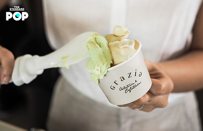 ถ้าคุณกำลังมองหาร้านเจลาโต เราอยากแนะนำ Grazia Gelato & Coffee ร้านไอศกรีมเจลาโตที่ทำจากวัตถุดิบสดและด้วยกรรมวิธีโฮมเมดหมุนเวียนรสชาติกันไป มีรสซิกเนเจอร์ในชื่อ Grazia ที่มีส่วนผสมของอะโวคาโดและนมอัลมอนด์ อีกทั้งรสช็อกโกแลต เสาวรส กรีกโยเกิร์ต บราวนี เอิร์ลเกรย์ ชาไทย มัตฉะ คาราเมล ฯลฯ ขึ้นอยู่กับวัตถุดิบที่มีในแต่ละวัน อ่านรีวิวฉบับเต็มได้ที่ https://thestandard.co/grazia-gelato-coffee/