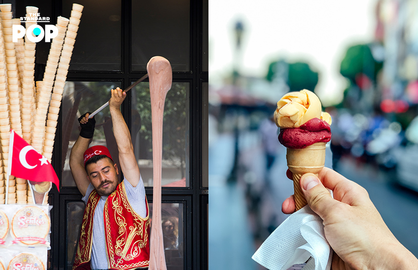 หลายคนน่าจะเคยเห็นคลิปวิดีโอที่มีชาวตุรกีถือไม้พายและควงไอศกรีมเนื้อหนืดยืดได้ไปมา ในขณะที่ลูกค้ายืนถือโคนไอศกรีมรออยู่หน้าร้าน แต่ด้วยลีลาและความขี้เล่นของคนขาย ทำให้ลูกค้าไม่ได้ไอศกรีมมาลิ้มรสสักที คุณน่าจะสงสัยว่าเหตุการณ์นี้คืออะไรกัน ไอศกรีมเนื้อหนืดที่เกาะอยู่บนปลายไม้พายนี้เรียกว่า ‘ดอนดูร์มา’ ของหวานดับร้อนที่มีเอกลักษณ์เป็นความเหนียวหนืดจาก ‘ซาเลป’ หรือผงกล้วยไม้ป่า และ ‘แมสติก’ ยางไม้ที่สามารถกินได้ที่หาได้ง่ายในประเทศตุรกี เมื่อไอศกรีมมีความหนืดและหนัก การตักไอศกรีมจึงจำเป็นต้องใช้ไม้พายที่แข็งแรงและคนตักไอศกรีมที่ชำนาญการ สิ่งที่อยู่คู่กับดอนดูร์มาอยู่เสมอคือคนตักไอศกรีมที่มีความขี้เล่น ควงดาบไปมา หลอกล่อหยอกเย้าไม่ให้เราได้ไอศกรีมไปเสียที จึงเป็นที่มาของคลิปวิดีโอตลกๆ ที่ผู้คนชอบใจกัน