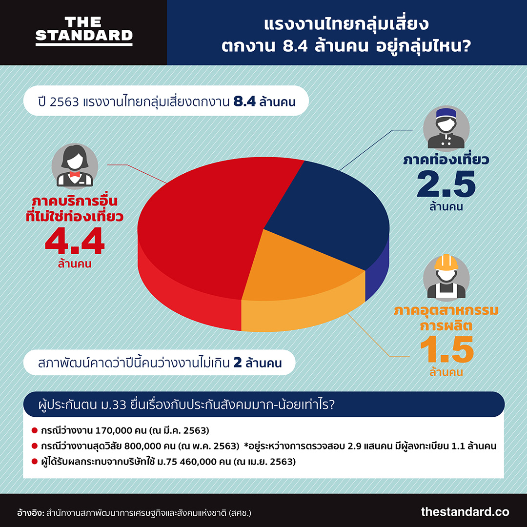 มาตรการที่ใช้ควบคุมการแพร่ระบาดโควิด-19 ส่งผลให้บางกิจการหยุดชะงัก โดยเฉพาะการท่องเที่ยว ร้านค้า ร้านอาหาร ไปจนถึงห้างสรรพสินค้า ฯลฯ ส่งผลให้พนักงานถูกพักงาน บางส่วนถูกเลิกจ้าง แต่ปีนี้สภาพัฒน์ระบุว่า มีความเสี่ยงที่คนไทยจะตกงานถึง 8.4 ล้านคน จะอยู่ในกลุ่มไหนบ้าง?