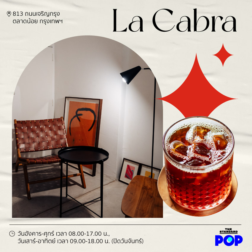 La Cabra คาเฟ่ตลาดน้อยด้วยการตกแต่งสไตล์นอร์ดิกที่เน้นความเรียบง่าย สีขาว และไม้ แต่ก็ยังกลมกลืนไปกับย่านเมืองเก่าอย่างตลาดน้อย หน้าร้านมีกิมมิกเล็กๆ น่ารัก ที่ใช้ตั่งเป็นที่นั่งพร้อมกับหมอนขวานสไตล์ไทยๆ ดูไปดูมาก็เข้ากับสไตล์ร้านได้อย่างน่าแปลกใจ