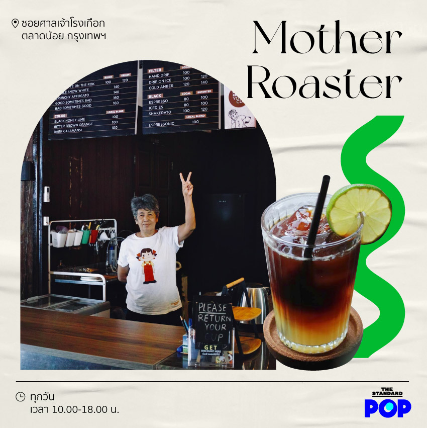 Mother Roaster คาเฟ่ตลาดน้อยที่โด่งดังเพราะมีบาริสต้าที่เป็นคุณแม่ของเจ้าของร้านคอยต้อนรับ และบรรยากาศเก่าย้อนยุค การตกแต่งด้วยไม้ ทำให้คาเฟ่ตลาดน้อยแห่งนี้อบอุ่นมาก