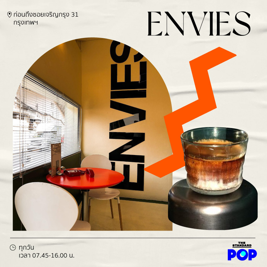ENVIES คาเฟ่ที่หยิบเอาอัตลักษณ์ของเมืองเก่ามาแมตช์เข้ากับความร่วมสมัย ทำให้ออกมาเป็นคาเฟ่ที่มีความเรโทรแต่ก็ยังโมเดิร์นในบางมุม เสิร์ฟเมนูทั้งกาแฟและค็อกเทลกาแฟ