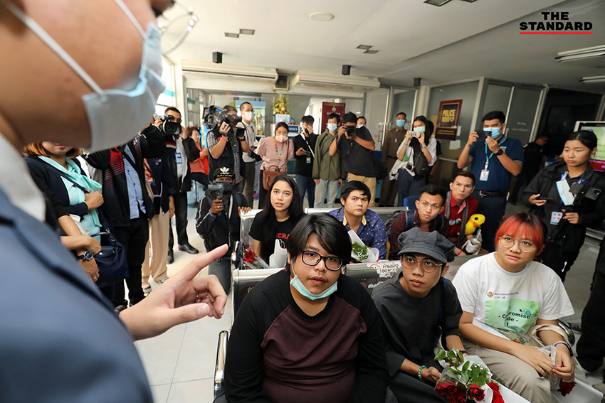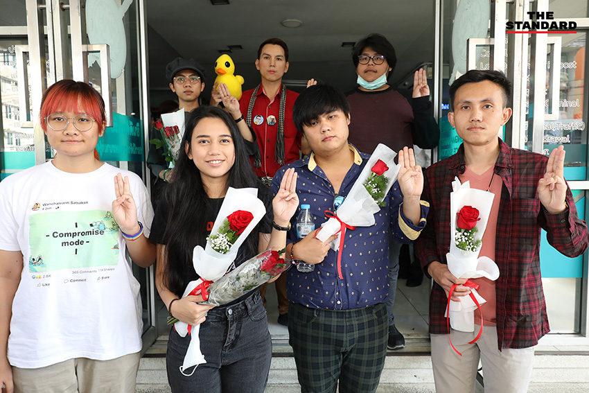 วันนี้ (8 ธันวาคม) เวลา 09.30 น. ที่สถานีตำรวจนครบาล (สน.) ทุ่งมหาเมฆ นักกิจกรรม และนิสิต-นักศึกษารวม 9 ราย นำโดย มายด์-ภัสราวลี ธนกิจวิบูลย์ผล เข้ารับทราบข้อกล่าวหาตามมาตรา 112 ในคดีการชุมนุมที่หน้าสถานทูตเยอรมนี เมื่อวันที่ 26 ตุลาคมที่ผ่านมา โดยก่อนหน้านี้มีการแจ้งข้อกล่าวหาตามประมวลกฎหมายอาญามาตรา 116 ต่อผู้กล่าวปราศรัยและผู้อ่านแถลงการณ์ในภาษาต่างๆ ไปแล้วจำนวน 9 ราย ต่อมาตำรวจได้ออกหมายเรียกในข้อหามาตรา 112 เพิ่มเติม