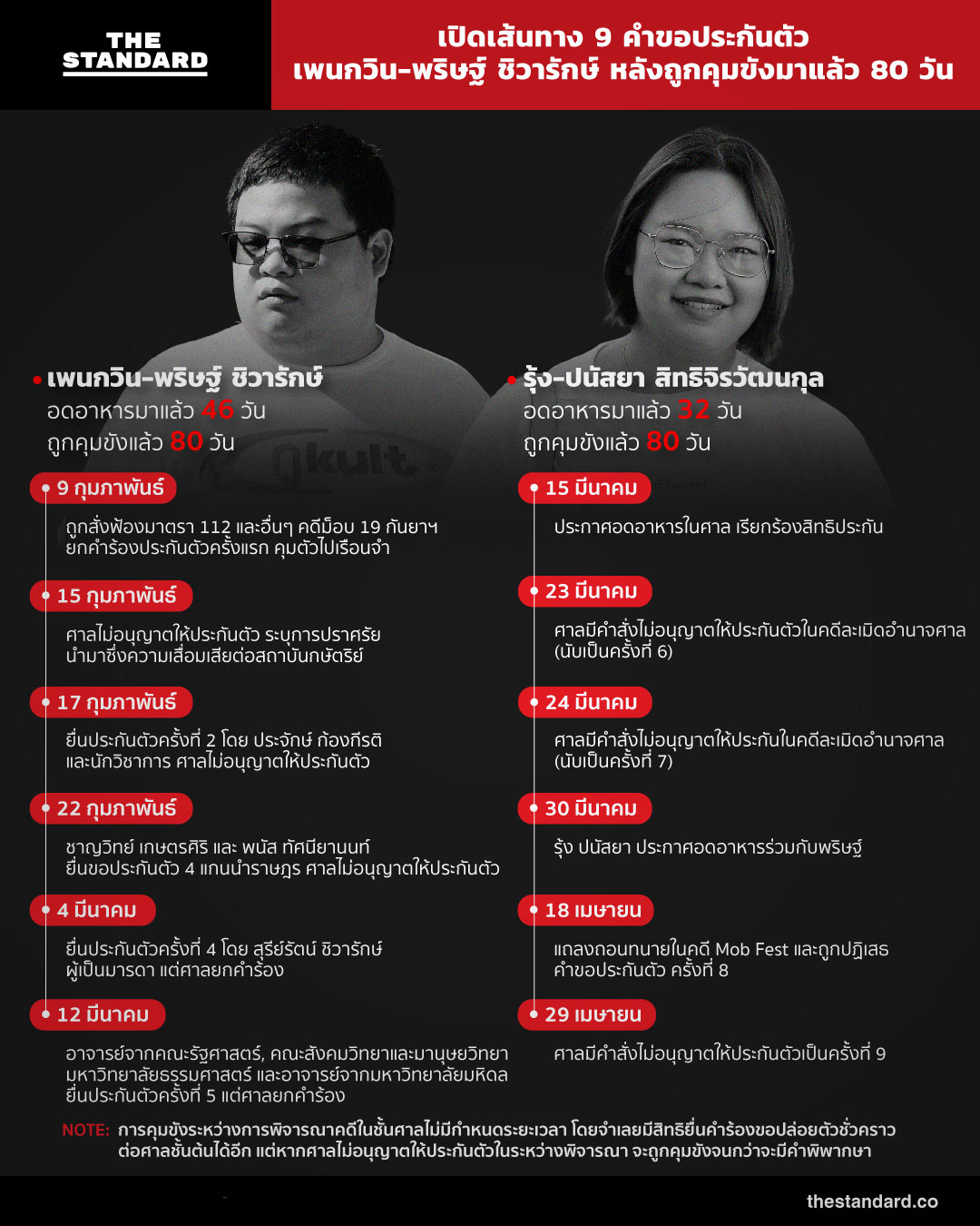 THE STANDARD เปิดเส้นทาง 9 คำขอประกันตัวพริษฐ์ ซึ่งมีทั้งทนาย มารดา อาจารย์ และนักวิชาการจากมหาวิทยาลัยต่างๆ พยายามยื่นประกันตัวมาหลายครั้ง