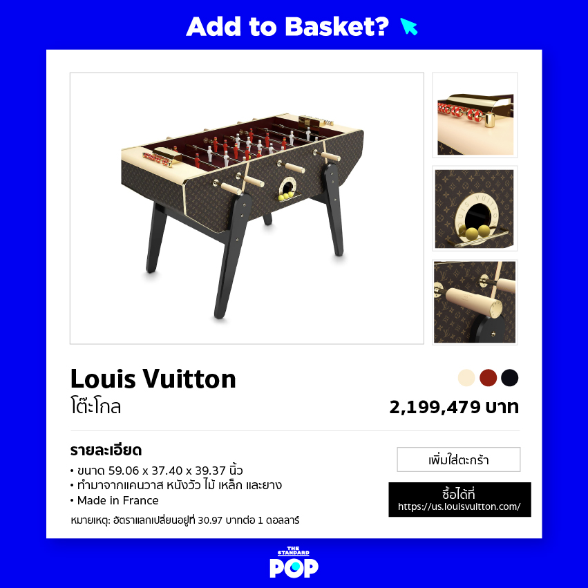 ซึ่งโต๊ะโกลนี้ ทาง Louis Vuitton เปิดให้สั่งทำพิเศษผ่านทางเว็บไซต์ของแบรนด์ เผื่อใครสนใจอยากซื้อเกมนี้มาเล่นฆ่าเวลาเพื่อรอบาร์โปรดกลับมาเปิดอีกครั้งก็คลิกเข้าไปที่เว็บไซต์ได้เลย (หรือจะซื้อทั้งบาร์ไปด้วยเลยก็ได้ ไม่ว่ากัน)