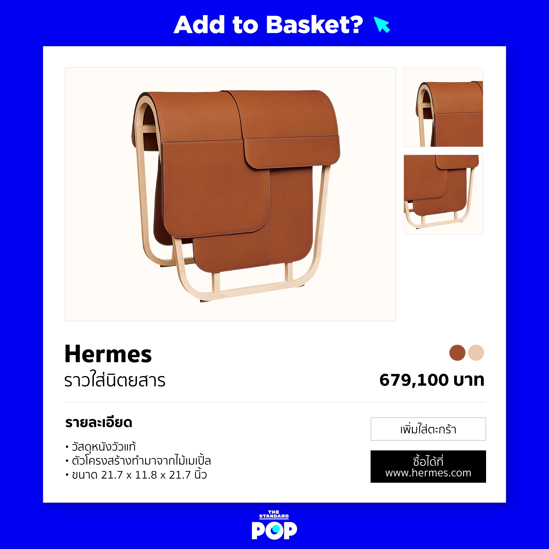 สำหรับคนรักการอ่านนิตยสาร คงต้องการถนอมนิตยสารเล่มโปรดด้วยการหาที่ใส่ให้เป็นระเบียบเรียบร้อย Add To Basket? วันนี้ ขอเสนอราวใส่นิตยสารจากแบรนด์อย่าง Hermes ที่ไม่เป็นสองรองใครในด้านเครื่องหนัง… และราคา