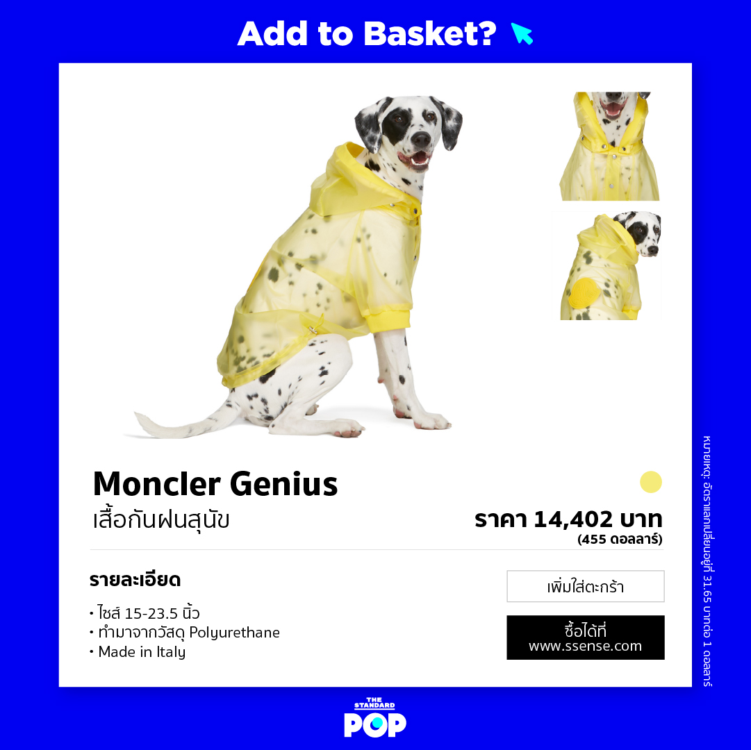 ซึ่งเสื้อกันฝนสีเหลืองที่ชวนให้นึกถึงเรื่อง IT ตัวนี้ ก็มาจากการร่วมงานครั้งนี้เช่นกัน นอกจากนั้นแล้วยังมีทั้งเสื้อนวมขนเป็ดกันหนาว เอกลักษณ์ของ Moncler ถูกย่อไซส์และสัดส่วนให้เหมาะกับสุนัข แถมยังมีให้เลือกหลายขนาดตามพันธุ์ของสุนัขอีกด้วย จึงมั่นใจได้เลยว่าเราและเพื่อนรักสี่ขาจะเป็นคู่หูที่ตามเทรนด์แฟชั่นแบบครบทีมแน่นอน