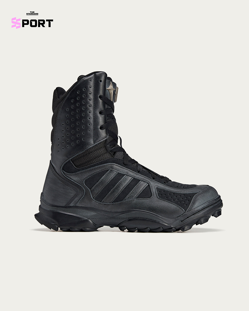 GSG9 Boot ที่ถูกรีดีไซน์ใหม่ด้วยหัวรองเท้าแบบอสมมาตร วัสดุ suede ย้อมพิเศษ ผสมหนังและ cordura พร้อมสัญลักษณ์โลหะ Thug Club