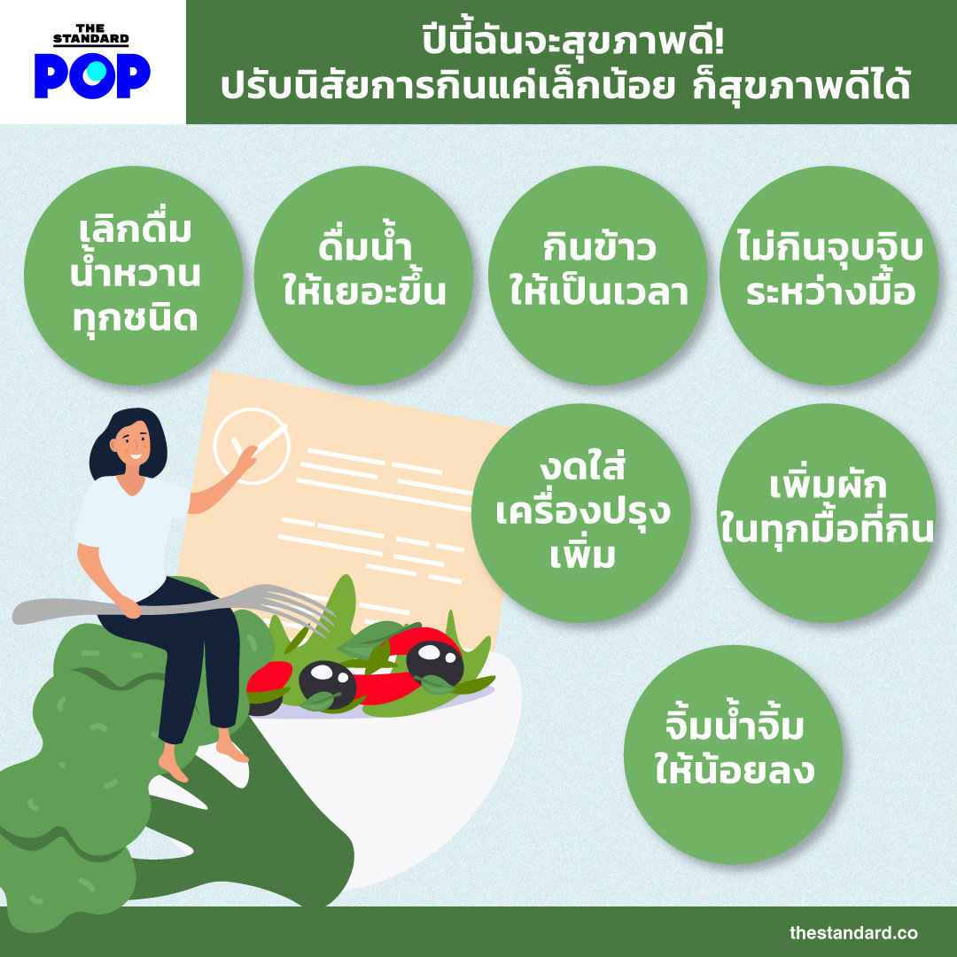 ปรับเปลี่ยนนิสัยการกินเล็กๆ แค่นี้ คุณก็มีสุขภาพที่ดีได้แล้ว ถ้ายังทำตามไม่ได้ทุกข้อก็ไม่เป็นไร ค่อยๆ ทำและชาเลนจ์ตัวเองไปเรื่อยๆ พอถึงสิ้นปีคุณจะเห็นผลลัพธ์อย่างแน่นอน
