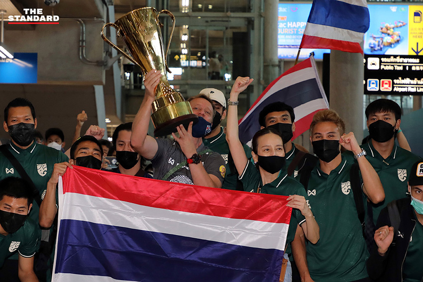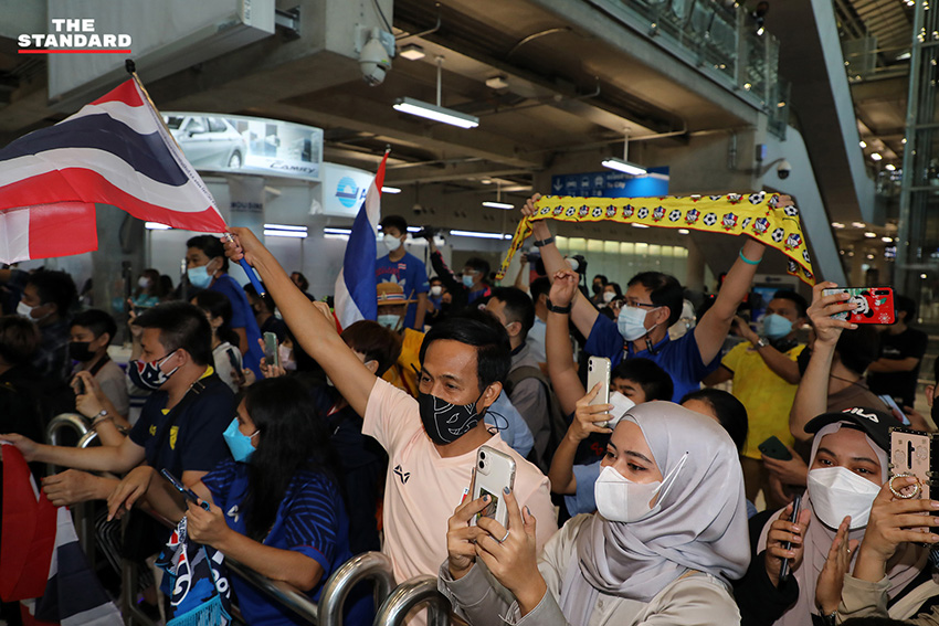 วันนี้ (2 มกราคม) ทัพนักเตะทีมชาติไทยเดินทางถึงสนามบินสุวรรณภูมิ ด้วยสายการบิน Thai Smile Airways เที่ยวบินที่ WE8703 หลังคว้าแชมป์ AFF Suzuki Cup 2020 โดยมีแฟนบอลและสื่อมวลชนมาให้การต้อนรับอย่างอบอุ่น