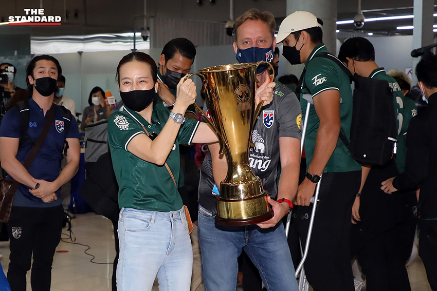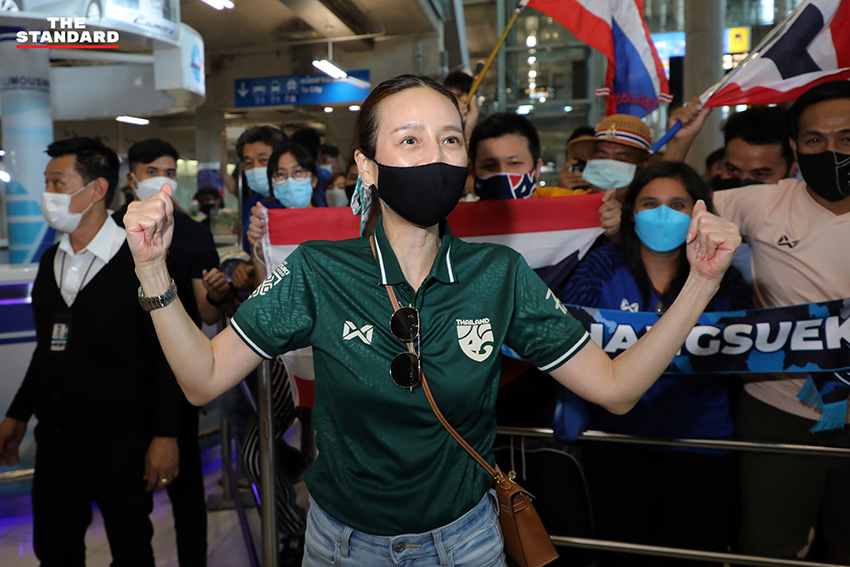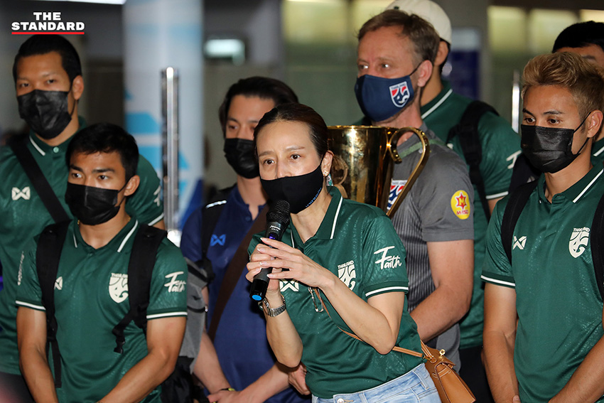 “แป้งอยากจะบอกว่า มือที่จะช่วยเข้ามากู้วิกฤตฟุตบอลไทยก็คือมือของแฟนฟุตบอลทุกคน เราขอมอบถ้วยใบนี้ให้เป็นของขวัญปีใหม่ 2565 แก่แฟนๆ ชาวไทย และเราจะก้าวเดินไปข้างหน้าให้ดีที่สุด