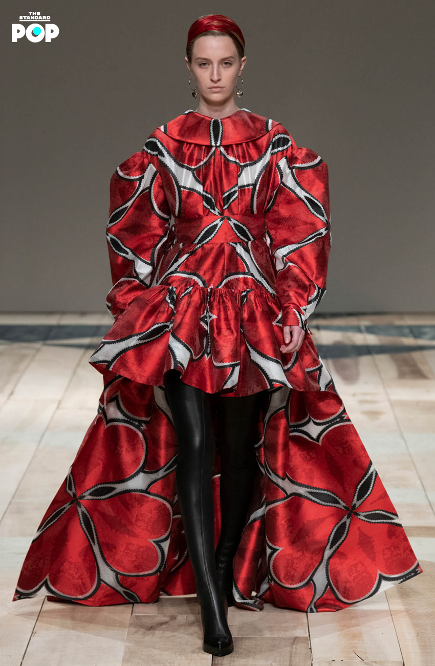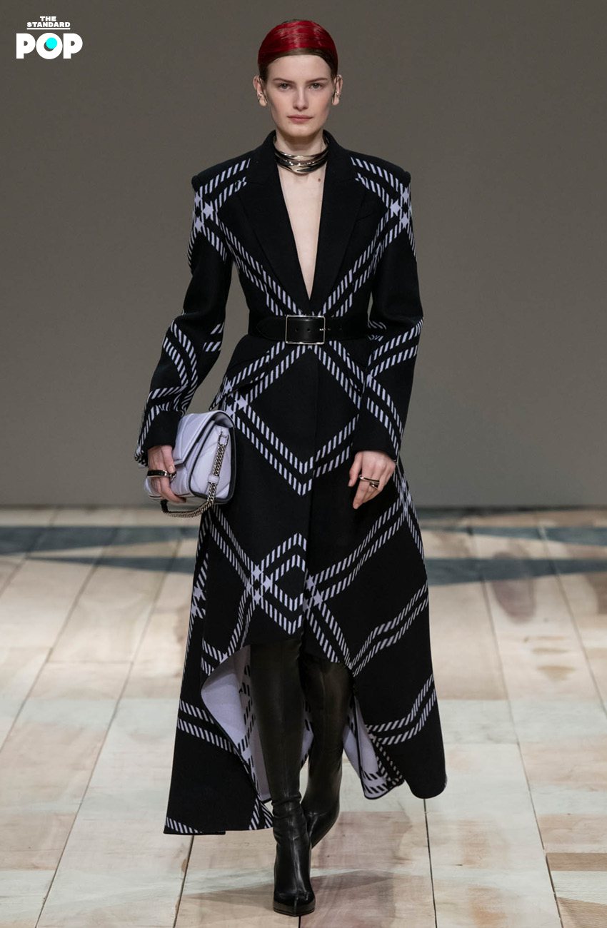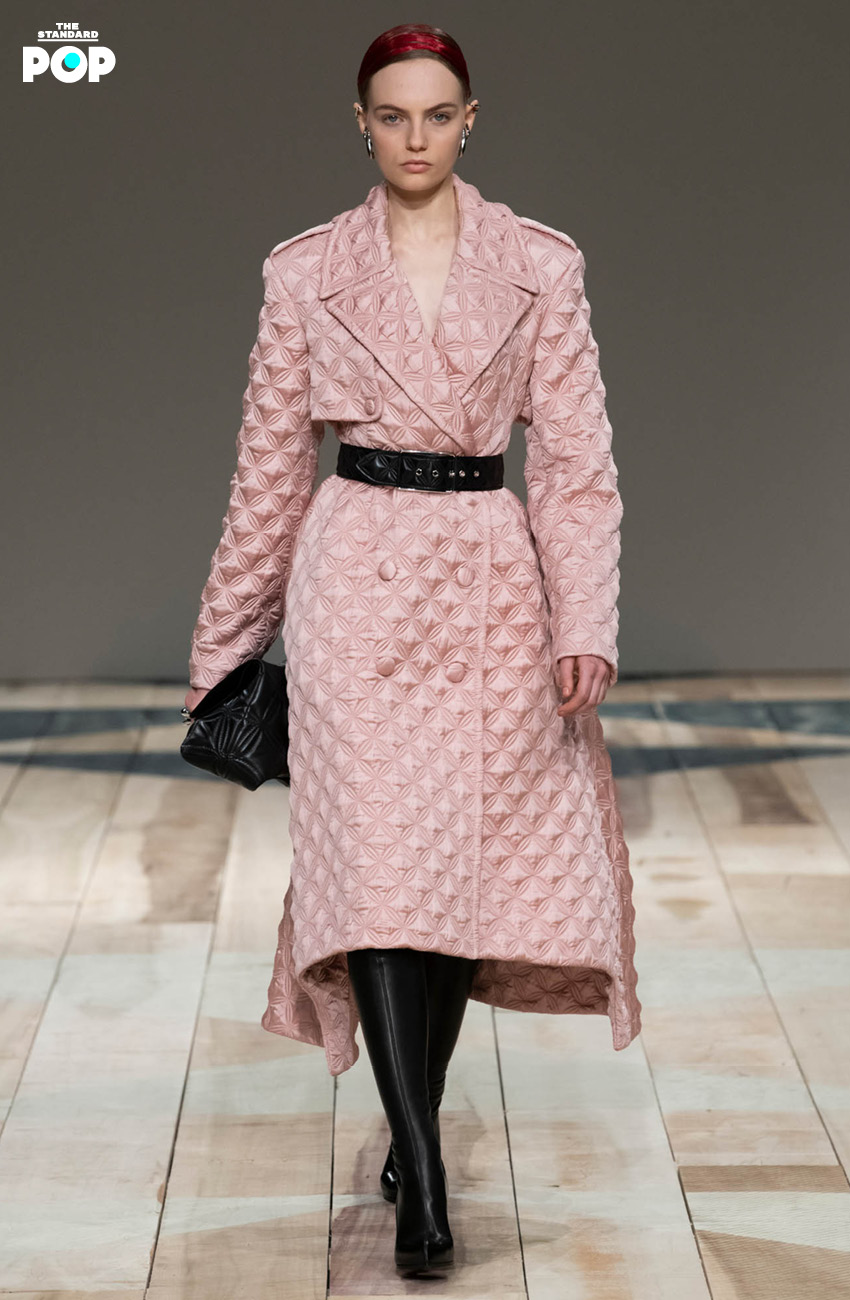 เสื้อผ้าสำหรับฤดูหนาวนี้ เราได้เห็นการนำศิลปะผ้าปูเตียง (Quilt) จากเมือง Wrexham ทางตอนเหนือของเวลส์ หนึ่งในผลงานทางแฟชั่นในศตวรรษที่ 19 ที่นำเอาเศษผ้ามาเย็บต่อเข้าด้วยกันแบบซ่อนรอยต่อ กลายเป็นลายกราฟิกจนเกิดเป็นภาพที่เล่าเรื่องจากพระคัมภีร์ในเสื้อโค้ตหนังตัวยาว เดรส และโค้ตผ้าวูลในโทนสีแดงสด ดำ กรมท่า และเทา