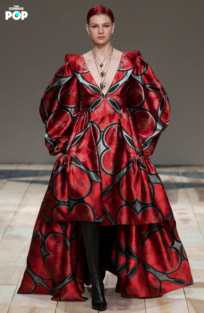ตามมาด้วยการใช้สัญลักษณ์หลักอย่างหัวใจ สัญลักษณ์สากลที่บรรจุไปด้วยความรักความห่วงใย ทั้งในผ้าลูกไม้รูปช้อน Welsh Love Spoon ที่นักเดินเรือสมัยก่อนมักแกะสลักเศษไม้เพื่อทำเป็นช้อนซุปแล้วมอบให้คนรักต้ังแต่สมัยศตวรรษที่ 15 พาดอยู่บนเดรสและโค้ตหนัง ตลอดจนลายหัวใจ เสื้อโค้ตลายทางที่หยิบมาจากโครงสร้างของหน้าต่างบ้านเมืองบนเสื้อโค้ตกึ่งผ้าห่ม และสร้อยคอที่ได้แรงบันดาลใจมาจากชุดเกราะนักรบ