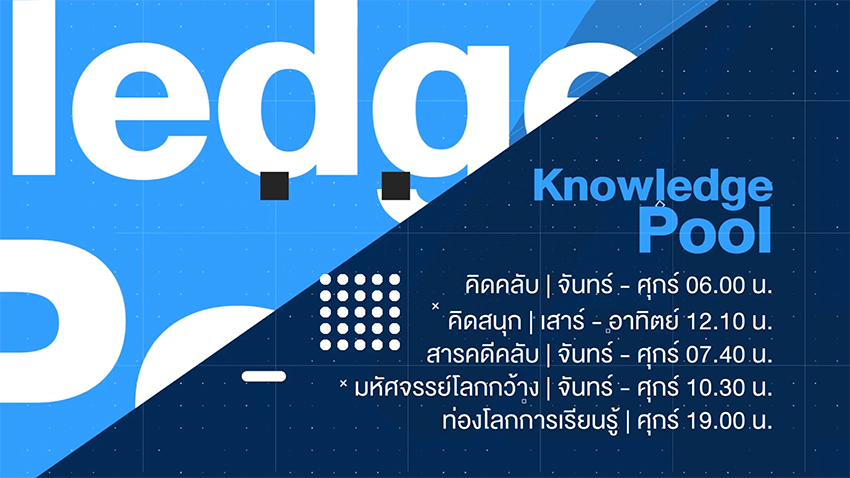 - คลังแห่งความรู้และประสบการณ์ชีวิต (Knowledge Pool) กลุ่มรายการที่นำเสนอความรู้ในแขนงต่างๆ อย่างหลากหลาย โดยผู้มีทักษะความสามารถฝึกฝนจนชำนาญ เสมือนคลังความรู้ขนาดใหญ่ที่นำมาแบ่งปัน แลกเปลี่ยน และนำเสนอส่งต่อกันได้ให้กับผู้ที่ต้องการเรียนรู้ เชื่อมโยงทุกเครื่องมือ สื่อการเรียนรู้ และแสดงทักษะความเป็นเลิศ ประยุกต์ใช้ประสบการณ์และทดลองปฏิบัติไปด้วยกัน ทั้งเชิงชุมชนและเชิงสังคม ดังสโลแกน ‘เชิญแหวกว่ายในคลังแห่งความรู้ที่ไม่มีสิ้นสุด’