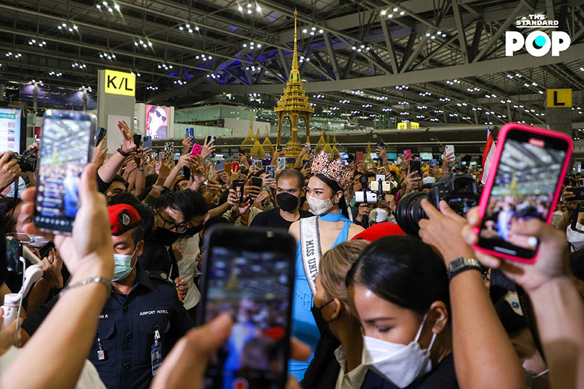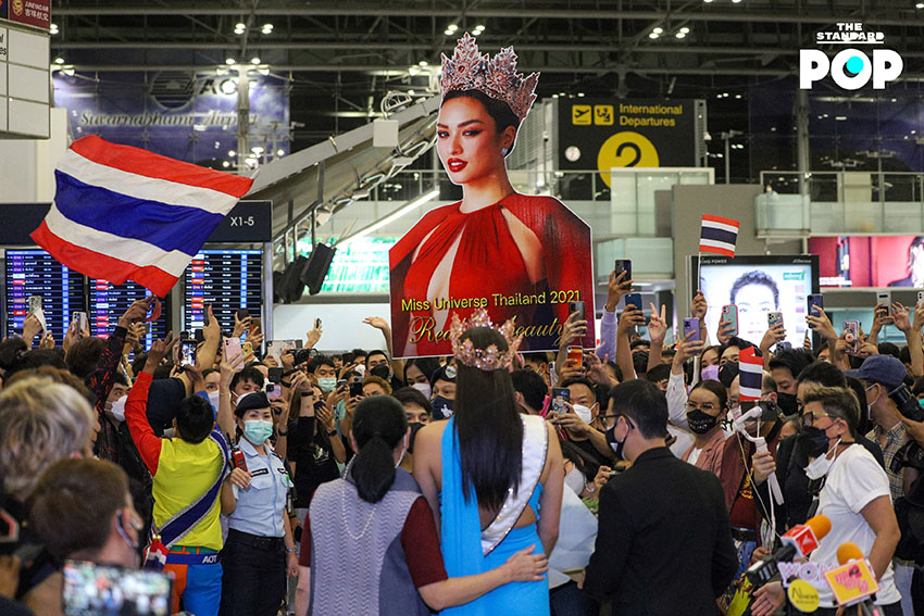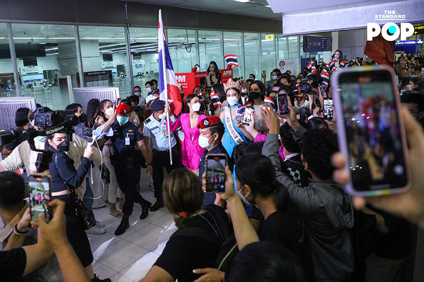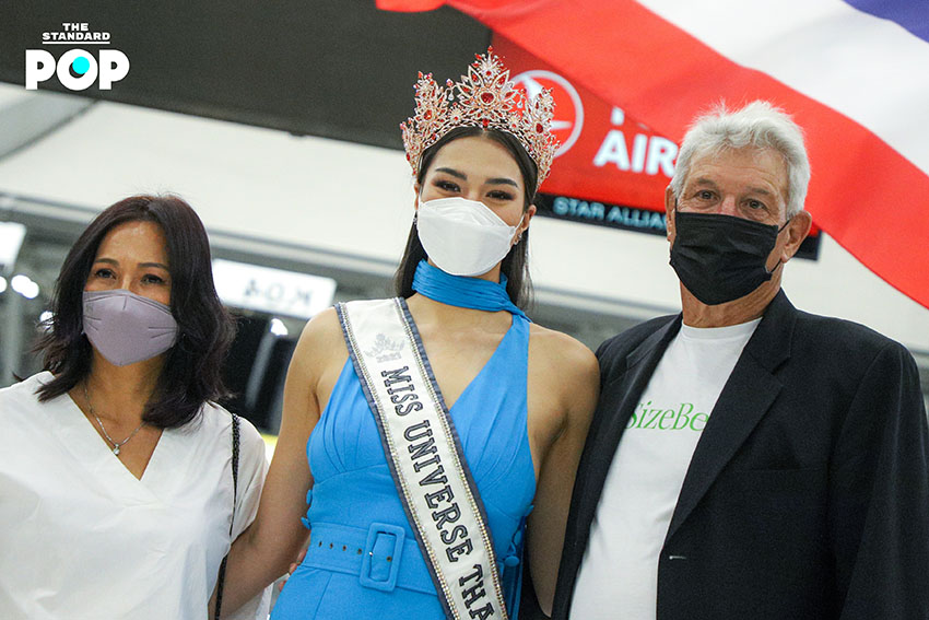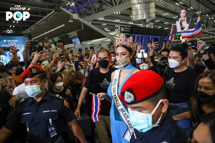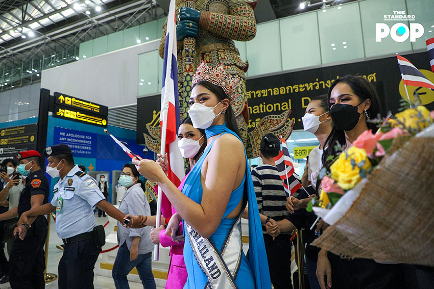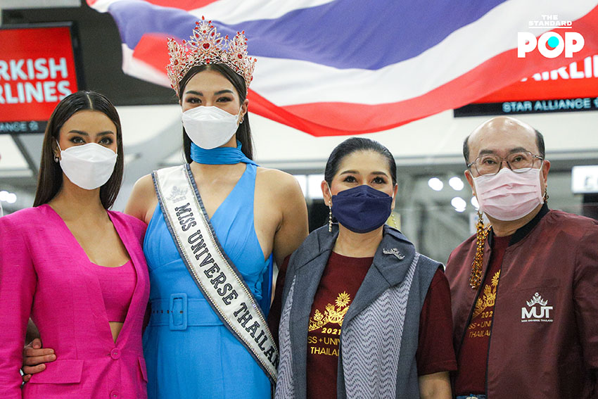 ก่อนเริ่มต้นเดินทางสู่เส้นทางแห่งจักรวาล ‘แอนชิลี’ ได้ปรากฏกายเพื่อพบปะพูดคุยกับแฟนคลับและสื่อมวลชนภายในสนามบินสุวรรณภูมิด้วยชุดจั๊มสูทสีฟ้าจากห้องเสื้อ NARONG ซึ่งเป็นชุดเดียวกันกับรอบออดิชันที่เธอได้ตอบคีย์เวิร์ด ‘สติ’ ได้อย่างน่าประทับใจจนได้รับ Golden Tiara พร้อมกระเป๋าเดินทางจำนวน 9 ใบ ด้วยความมุ่งมั่นและตั้งใจเกินร้อยในการประกวด Miss Universe 2021 โดยตั้งเป้าคว้าชัยชนะและมงสามเพื่อแฟนนางงามชาวไทย ซึ่งไฮไลต์ของวันนี้คือการส่งต่อธงไทยจากพี่สู่น้อง ‘อแมนด้า’ ถึง ‘แอนชิลี’ โบกสะบัดเป็นสัญญาณการเริ่มต้นของการประกวดในครั้งนี้ พร้อมส่งพลังบวกในด้านดีและกำลังใจที่ไม่มีสิ้นสุดให้กับตัวแทนสายสะพาย THAILAND อย่าง ‘แอนชิลี’