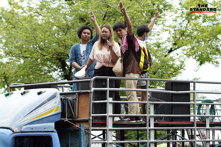 ก่อนที่ในเวลา 11.34 น. รุ้ง-ปนัสยา สิทธิจิรวัฒนกุล หนึ่งในแกนนำที่เตรียมขึ้นปราศรัยวันนี้ ซึ่งเมื่อเดินทางมาถึงหน้ามหาวิทยาลัยธรรมศาสตร์ ท่าพระจันทร์ ได้กล่าวว่า รถขนของที่เดินทางมาจากมหาวิทยาลัยธรรมศาสตร์ รังสิต ถูกเจ้าหน้าที่สกัดและยึดหนังสือคำปราศรัยที่มีเนื้อหาของการปราศรัยเมื่อวันที่ 10 สิงหาคมที่ผ่านมา จำนวนทั้งหมด 50,000 เล่ม แต่สิ่งของส่วนอื่นสามารถขนออกมาได้ พร้อมประกาศให้มวลชนรวมตัวเดินเท้าไปนำรถเครื่องเสียงที่ถูกสกัดอยู่บริเวณสะพานพระปิ่นเกล้ากลับมา