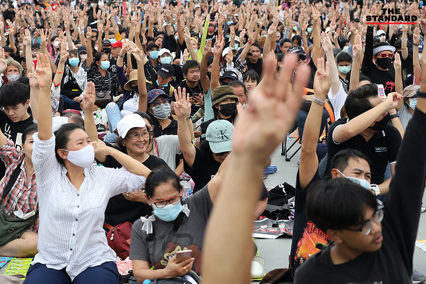 บรรยากาศการรวมตัวชุมนุมของประชาชนยังคงดำเนินไปอย่างต่อเนื่อง เพียงแต่มีการปรับเปลี่ยนจากจุดยุทธศาสตร์เดิมอย่าง ‘มหาวิทยาลัยธรรมศาสตร์’ เคลื่อนตัวสู่ ‘ท้องสนามหลวง’ ตั้งแต่ช่วงบ่ายที่ผ่านมา