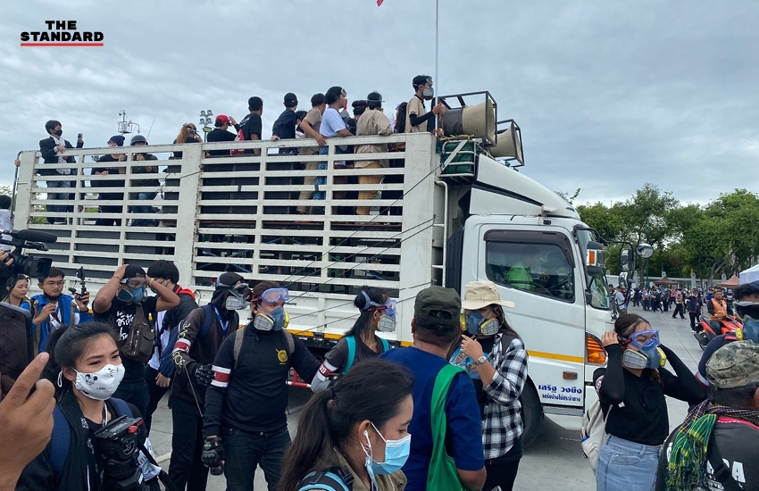 08.15 น. เพนกวิน-พริษฐ์ ชิวารักษ์ แจ้งจุดหมายปลายทางว่า “ขอให้ พล.อ. สุรยุทธ์ จุลานนท์ ประธานองคมนตรีเตรียมคนมารับหนังสือที่เราจะไปยื่น” ขณะที่การ์ดรอบรถนำขบวนสวมหน้ากากป้องกันแก๊สน้ำตา