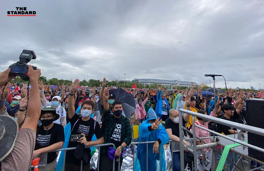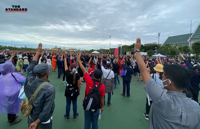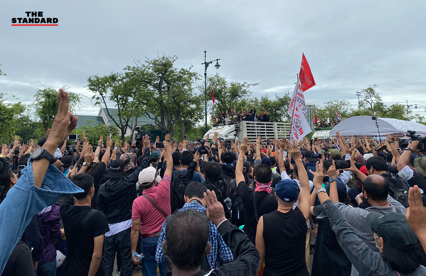06.36 น. เพนกวิน-พริษฐ์ ชิวารักษ์ ขอให้มวลชนชู 3 นิ้วเป็นเวลา 6 วินาที เพื่อรำลึกหลัก 6 ประการของคณะราษฎร