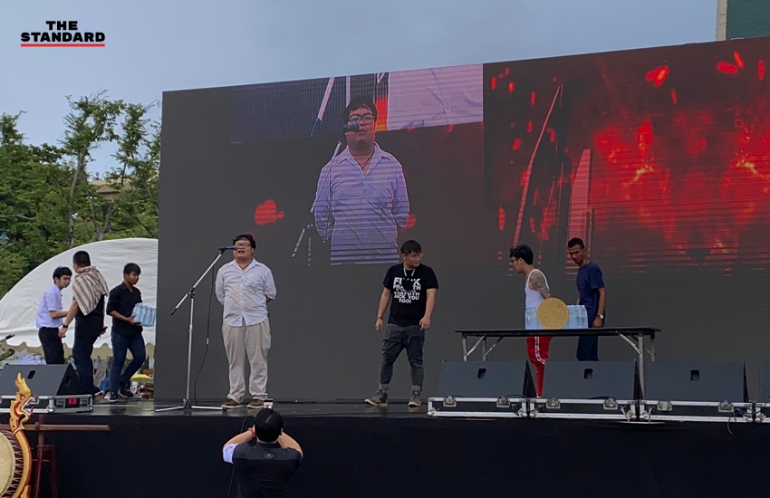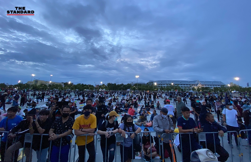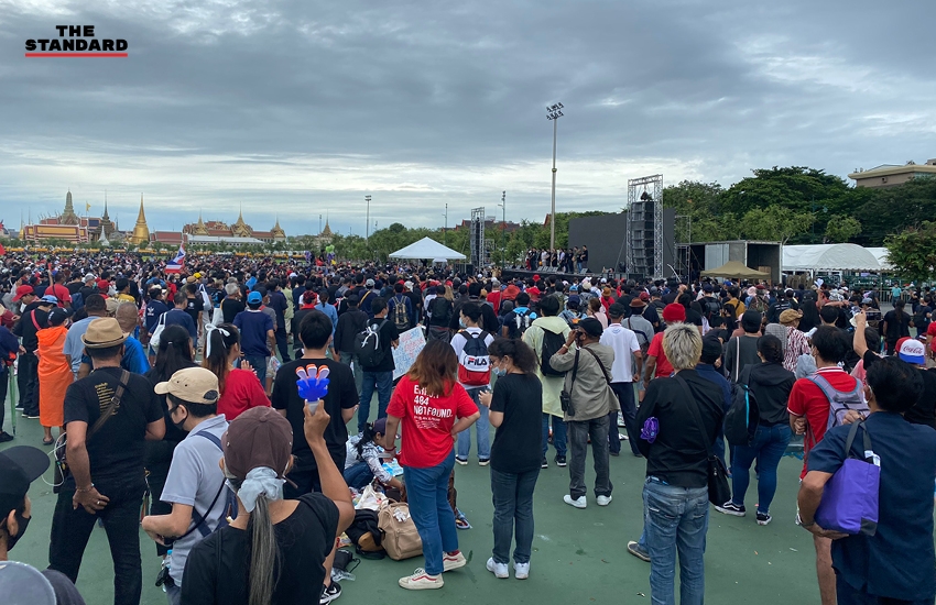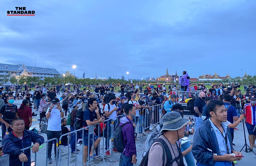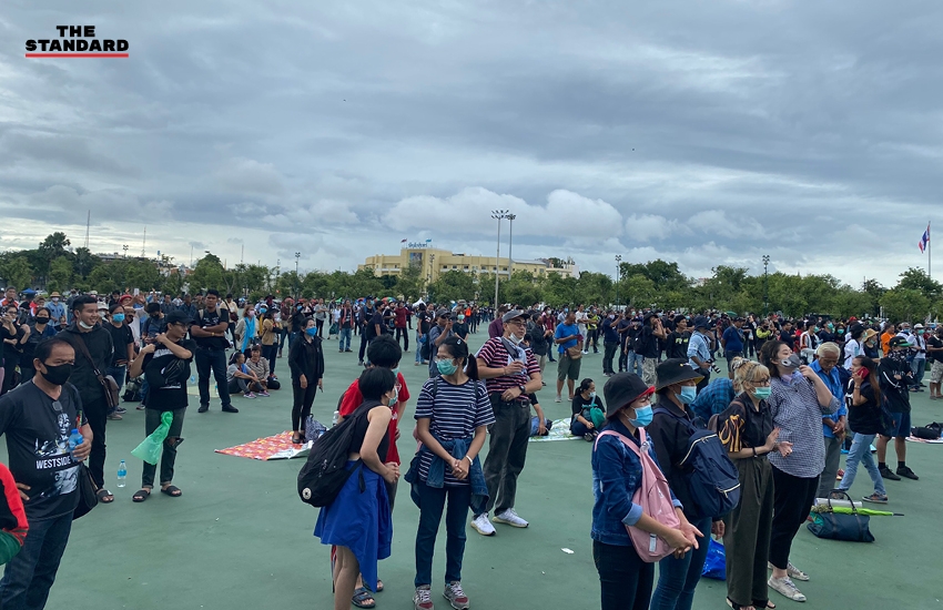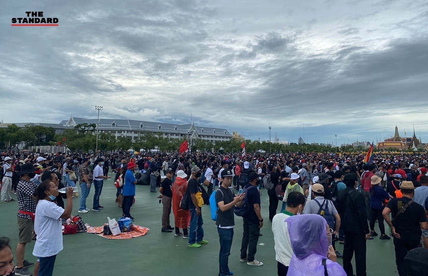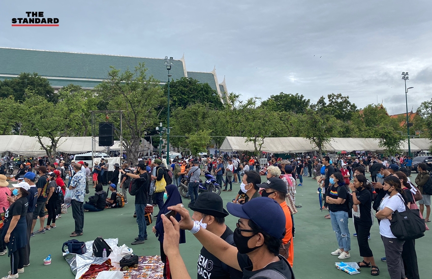 07.48 น. กลุ่มผู้ชุมนุมเตรียมความพร้อม ก่อนการเคลื่อนขบวนออกจากสนามหลวงในเวลา 08.00 น.