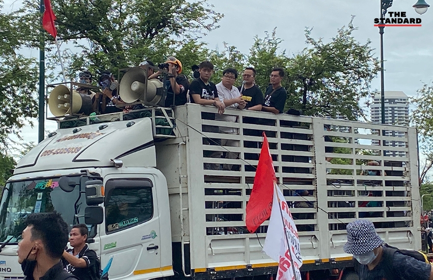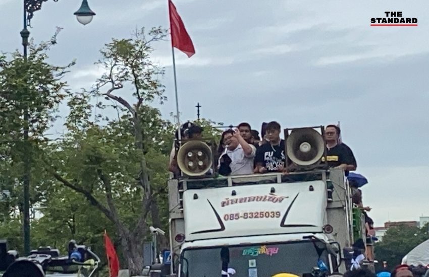 08.13 น. แกนนำขึ้นรถปราศรัยเคลื่อนที่ เตรียมเคลื่อนขบวน แต่ยังไม่ทราบจุดหมาย