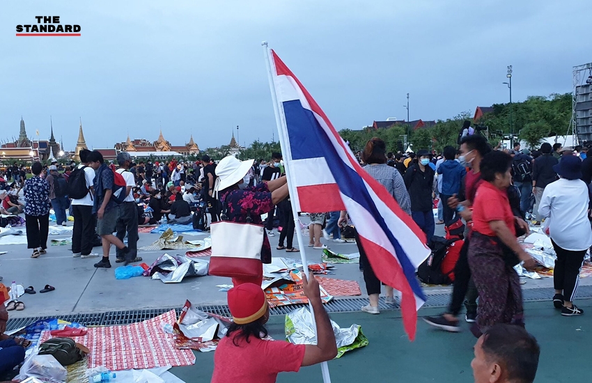 08.55 น. รุ้ง-ปนัสยา สิทธิจิรวัฒนกุล พยายามจะจับมือกับ ผบช.น. เพื่อให้สัญญาว่าจะนำหนังสือที่ยื่นไปส่งต่อให้ถึงมือองคมนตรี แต่ ผบช.น. พยายามบ่ายเบี่ยงโดยบอกว่าจะดำเนินการตามขั้นตอน ขณะที่มีการประกาศให้กลุ่มผู้ชุมนุมเคลื่อนย้ายกลับไปที่สนามหลวง โดยแกนนำจะมีการประกาศแนวทางการเคลื่อนไหวต่อไป และคาดว่าจะประกาศยุติการชุมนุมในวันนี้