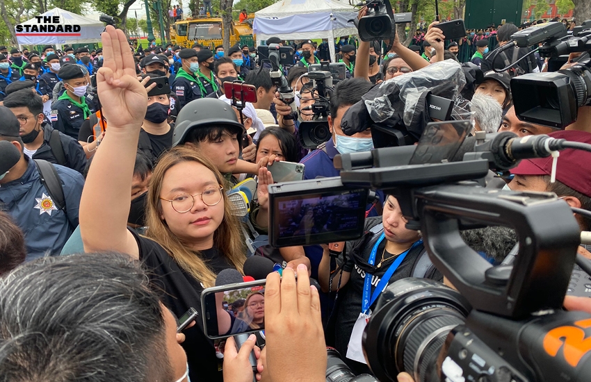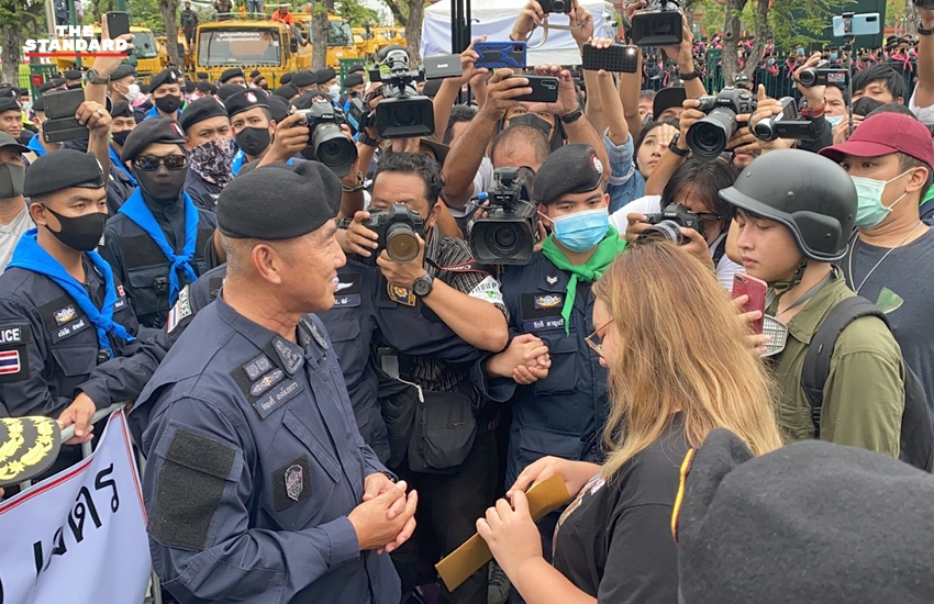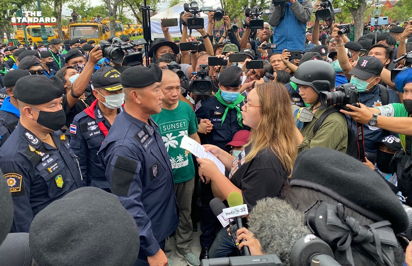 08.41 น. รุ้ง-ปนัสยา สิทธิจิรวัฒนกุล อยู่ระหว่างการเจรจากับตำรวจเพื่อขอเดินทางไปยื่นหนังสือข้อเรียกร้องต่อประธานองคมนตรี