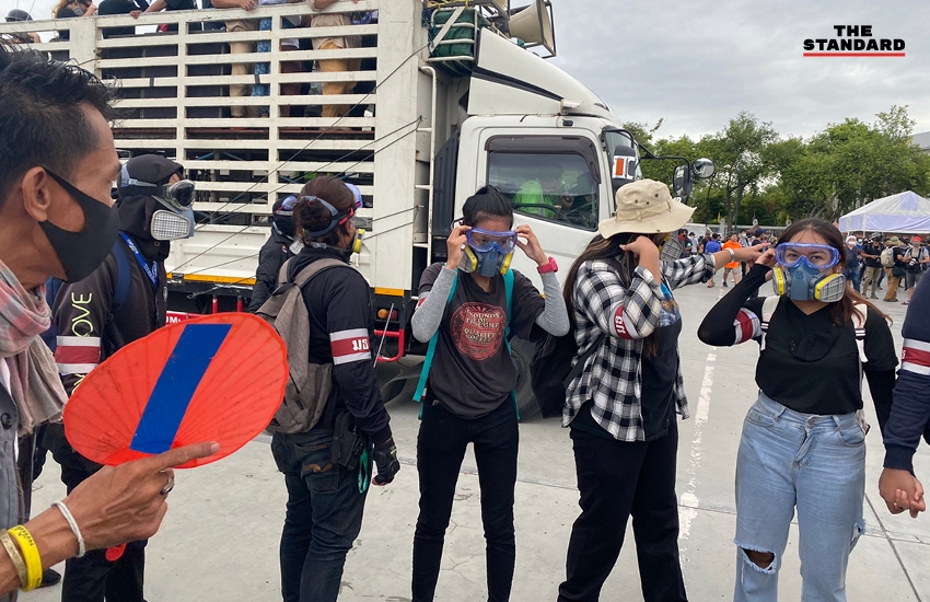 08.32 น. บรรยากาศแนวผู้ชุมนุมและแนวตรึงกำลังของตำรวจตึงเครียดอย่างต่อเนื่อง แนวกั้นที่ 2 ของตำรวจเริ่มเสริมกำลังแนวกั้นที่ 1