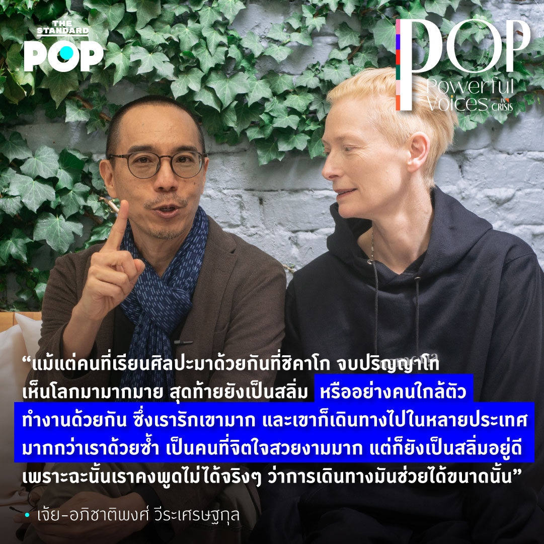 ในปี 2564 ท่ามกลางวิกฤตโรคระบาด สถานการณ์ดุเดือดทางการเมือง และการบริหารจัดการของรัฐไทยที่หนักข้อขึ้นเรื่อยๆ สิ่งที่เกิดขึ้นในอีกซีกโลกหนึ่งคือ ภาพยนตร์เรื่องล่าสุด Memoria ที่ถ่ายทำในประเทศโคลอมเบีย ได้พาเจ้ยกลับไปยืนบนเวทีคานส์อีกครั้ง หลังสิ้นเสียงการปรบมือที่ยาวนานจากผู้ชม เจ้ยเลือกที่จะใช้ช่วงเวลาที่สำคัญบนเวทีไปกับการส่งเสียง ‘ปลุก’ รัฐบาลไทยและรัฐบาลโคลอมเบียให้ตื่นขึ้นและทำงานเพื่อประชาชน