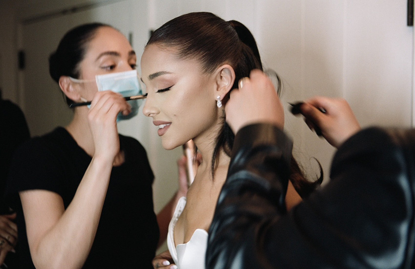 ซึ่ง Vogue อเมริกา เผยเพิ่มเติมว่า สไตลิสต์ของอะรีอานาอย่าง มีมี่ คัตเทรลล์ ช่างทำผม จอช ลิว และช่างแต่งหน้า แอช คลอห์ม ได้แรงบันดาลใจส่วนหนึ่งจากลุคชุดแต่งงานที่ ออเดรย์ เฮปเบิร์น ใส่ในภาพยนตร์สุดคลาสสิกเรื่อง Funny Face เมื่อปี 1957 ส่วนเจ้าบ่าวเลือกใส่สูทของแบรนด์ Tom Ford