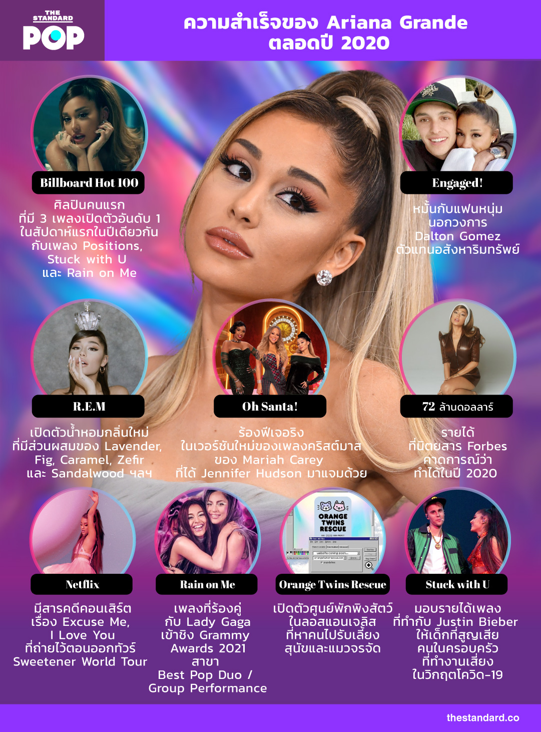 2020 นับเป็นอีกหนึ่งปีสำคัญของ Ariana Grande ทั้งในเชิงการสร้างสรรค์ผลงานเพลงที่น่าจดจำบนสายการเป็นศิลปินของเธอ บวกกับเรื่องราวส่วนตัวที่เธอเพิ่งได้หมั้นกับแฟนหนุ่ม Dalton Gomez