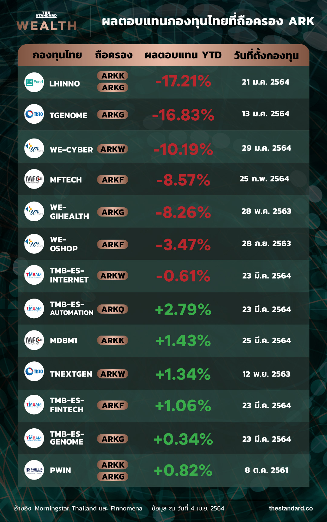 ARK Invest เป็นหนึ่งในบริษัทจัดการกองทุนที่ร้อนแรงที่สุดในช่วง 2 ปีที่ผ่านมา แต่ในช่วงต้นปีนี้ บรรดากองทุน ETF ภายใต้การบริหารของ ARK เริ่มถูกเทขายออกมา พร้อมๆ กับแรงเทขายที่เกิดขึ้นกับหุ้นในกลุ่มเทคโนโลยีทั่วโลก ส่งผลให้ผลตอบแทนของกองทุนต่างๆ ภายใต้การบริหารของ ARK ในช่วงไตรมาสแรกค่อนข้างจะย่ำแย่กว่าที่ผ่านมาค่อนข้างมาก